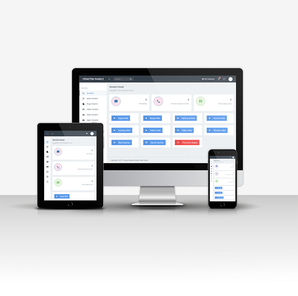 2- Responsive Gelişmiş Yönetim Paneli Sayesinde Sitedeki Tüm Alanları Yönetebilirsiniz.(Telefon ve Tabletinizden Yönetim Panelini mobil uyumlu kullanabilirsiniz.)